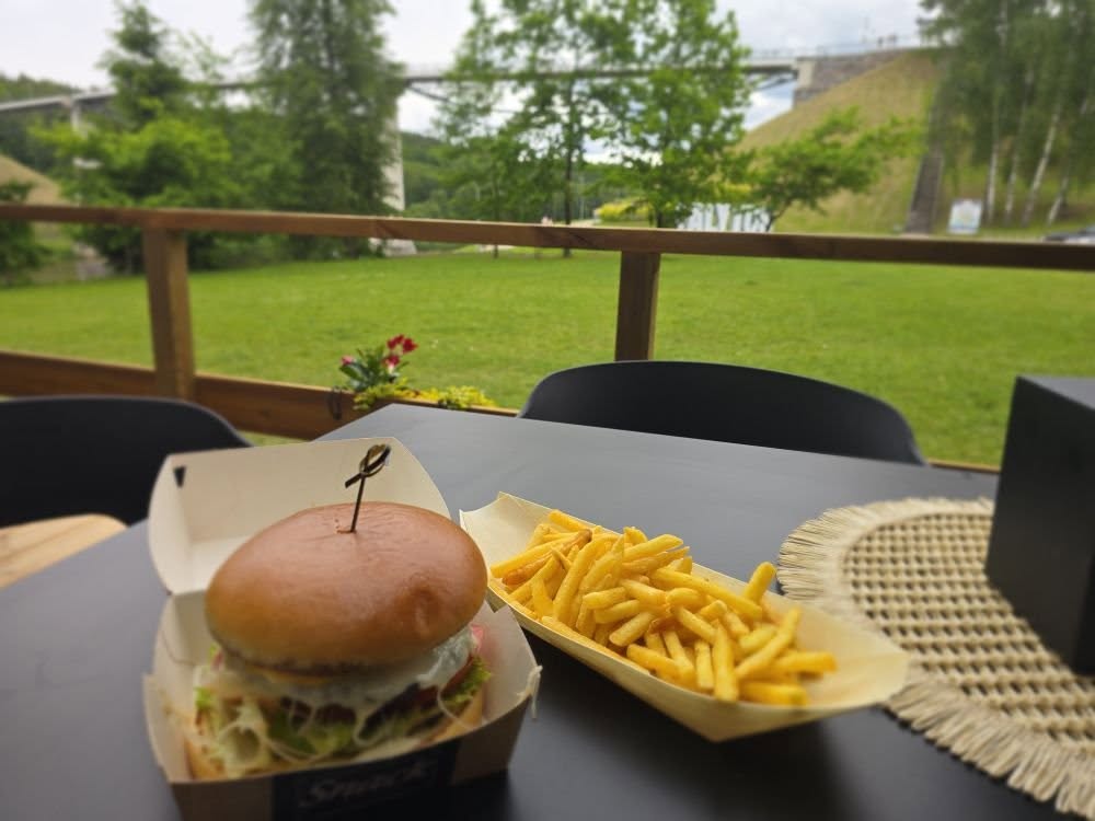 Kavinė vaizdingame Alytaus Dainų slėnyje prie aukščiausio Lietuvoje pėsčiųjų tilto! Tai puiki vieta atsipalaiduoti, pasimėgauti gardžia kava, gaiviais gėrimais, užkandžiais ir sultingais burgeriais. Jauki atmosfera erdvioje terasoje vaizdu į Nemuną.