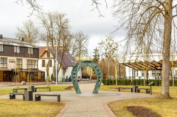 Skulptūra „Svetingumo vartai“, sukurta žinomo skulptoriaus Tado Gutausko, buvo pastatyta 2013 m. ir skirta Sąjūdžio 25-mečiui paminėti. Skulptūros motyvu pasirinkta lietuviška pasaga, simbolizuojanti laimę, sėkmę bei namų apsaugą nuo blogio. Pasagoje įkomponuoti 16 kaimyninių tautų laimės bei sėkmės ženklai. Kiekvienoje skulptūros pusėje įkomponuoti aštuonių valstybių, iš kurių Druskininkai sulaukia daugiausiai turistų, sėkmės simboliai.